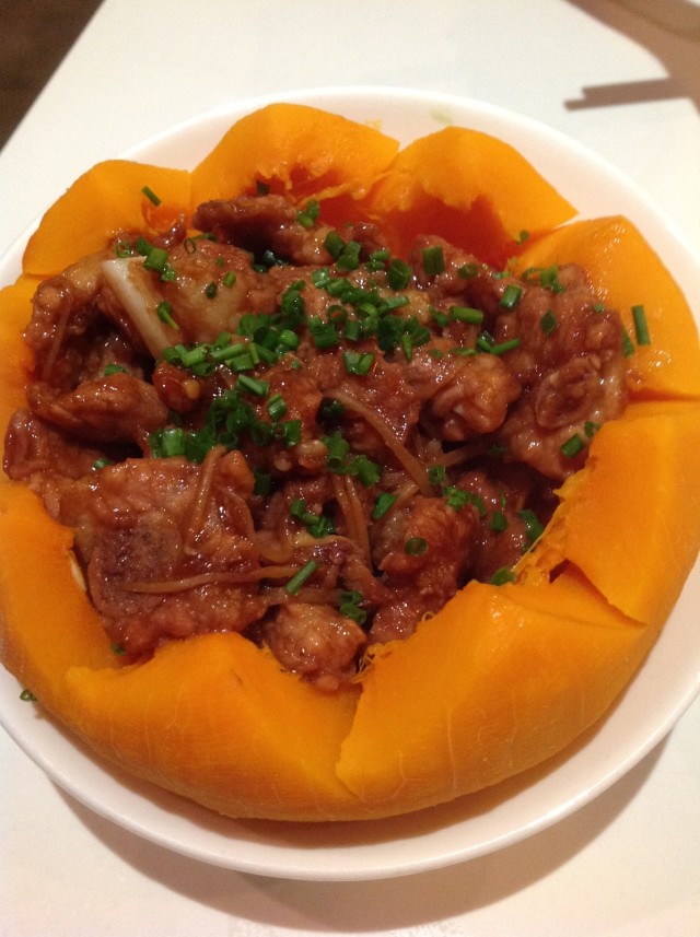 【南瓜蒸排骨】39元:卖相不错,但排骨真不敢恭维,食肉动物在面前吃的高兴,可我却不爱吃,肉质非常硬不说还带有股不是南瓜香味反而是不寻常的味道,让人无法识别,索性放下了筷子等待下一道菜。