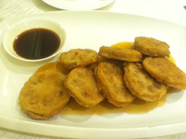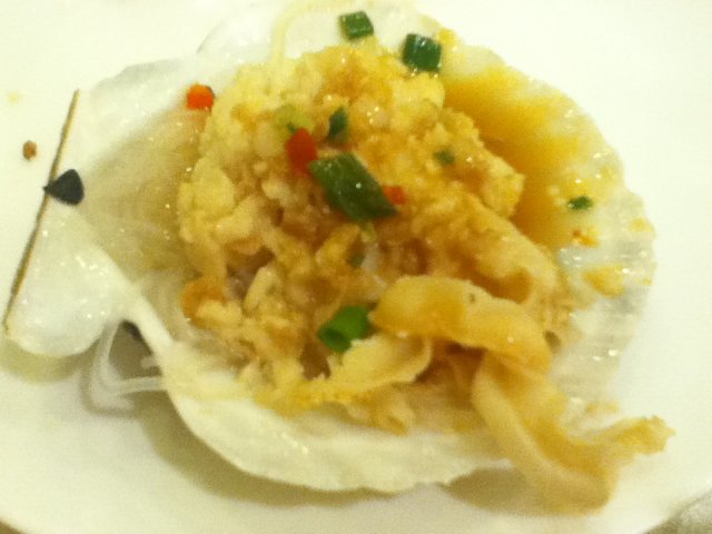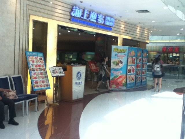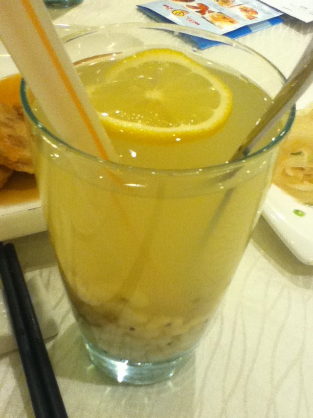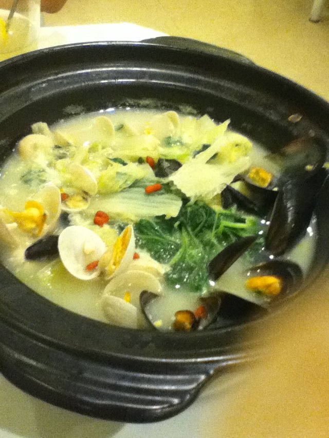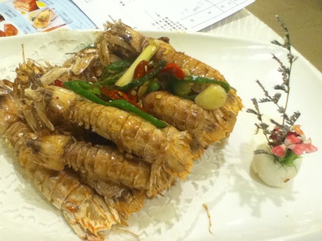 他们家门口那个9,19,29,39菜任点价格蛮吸引人的,等位的时候想好的,跑进去一点又豁边了。他们家环境还是不错滴,就是服务员好难叫啊,等位领进去,坐下就没人管了一刚,叫拿菜单叫了半天,然后点菜等上菜又半天。萝卜海蜇9米,里面一半以上都是萝卜丝~~~无功无过吧。鹅肝塞藕夹,好像是30米左右的,沾上配的辣酱油味道不错。柠檬薏米水18米,买一送一,等于9米一杯吧,味道还不错。椒盐濑尿虾68米,虽然点之前想到吃这个很麻烦,但是还是忍不住点了,果然吃的时候就后悔了,好难剥啊,肉质还算蛮肥的,不过感觉味道没调均匀。扇贝9米一个,他们家扇贝蛮不错的。冰镇芥兰19米貌似,很清爽,冰块保证了新鲜的口感,沾上酱油,味道不错。海鲜上汤蔬菜35米也不知道36米,差不多吃完了才上,当中叫他们去退掉,结果叫了三个人才回来答复说马上上了,不能退,结果那个马上又是20多分钟~~~结果原本觉得会蛮便宜的午饭也吃成人均100了~~