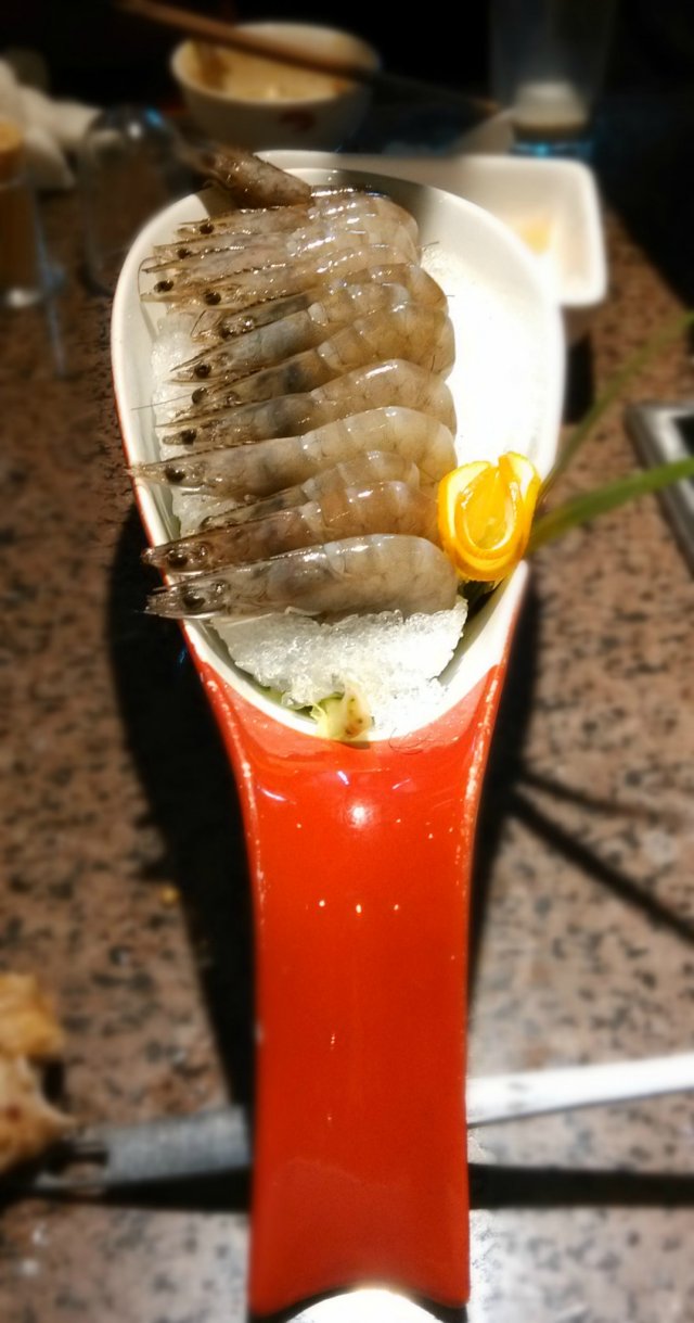 【鲜虾】鲜嫩,味道很美。盘子也很漂亮。