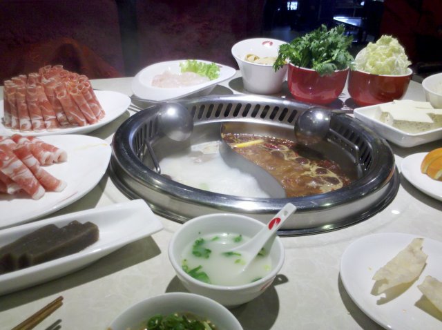 这家海底捞很大,有地下车库,靠近快速路,应该是交通比较便利吧,不过因为快速路不能直接穿过,所以如果从北边过来的话要绕一下下。放好车就能看到工作人员引导电梯位置,直达就餐区。我们来的时候不是正餐时间,所以人很少,更显得这里很宽敞。点了鸳鸯锅,一端下来就觉得汤底不错,颜色浓浓的,白的那边像是牛奶一样,红的更不用说了。两个人点了好多种菜,因为这里可以点半份的,这样就可以吃到很多种,像是羊肉啊,鱼肉啊,都点了,鱼肉特别好吃,但是不能煮过了,可以让服务员帮忙给涮,海底捞的服务可是一流的哦。还点了魔芋块,这个是一般的地方吃不到的哦,强烈推荐来试试!
