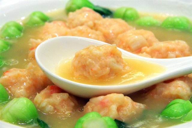 米汤浸蟹子龙虾球,一个个的虾球,饱满挺实,咬了一口,其中没有掺杂面粉,QQ有弹性,米汤的鲜味也相当的足。