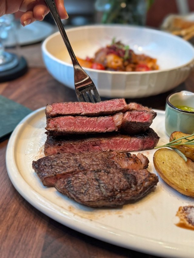 裡面是五成熟的粉嫩· 簡單配上胡椒鹽更突顯肉味