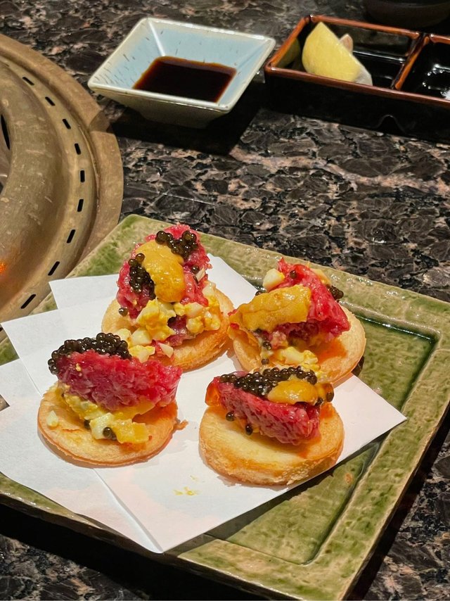 深圳烤肉|🥩又夠鐘嚟食老乾杯larr!!聖誕跨年首選! chan yan wing等級12023-12-22 關注 🥩冬日歲末想食暖粒粒噶肉肉就去食老乾杯啦~老乾杯深圳六週年出咗新品wor,做咗好多創新,今次來試下d新嘢最鐘意就係海膽魚子醬和牛塔塔同炙燒和牛藍鰭金槍魚壽司啦【海膽魚子醬和牛塔塔】燒到bobo脆噶黃油面包配上新鮮噶生牛肉魚子醬海膽酥脆香口~😋-【炙燒和牛藍鰭金槍魚壽司】我一直都覺得老乾杯噶壽司係最好食噶今次個新品係5成熟噶金槍魚配上一絕噶生牛肉做壽司入口即化,回味無窮lorr!-【和牛芝士可樂餅 佐松露醬】可樂餅火候掌握得剛剛好!外酥裏嫩,配上黑松露的醬汁,好食到爆arr 📍老乾杯(平安金融中心店)深圳市福田區益田路5033號平安金融中心商場9樓北塔N903號商鋪以上食評乃用戶個人意見 , 並不代表OpenRice之觀點。讚好分享深圳烤肉|🥩又夠鐘嚟食老乾杯larr!!聖誕跨年首選! 老干杯 (平安金融中心) https://s.openrice.com/KtbT0W0w8SG00檢舉 張貼 評分5味道5環境5服務5衛生5抵食用餐途徑堂食
