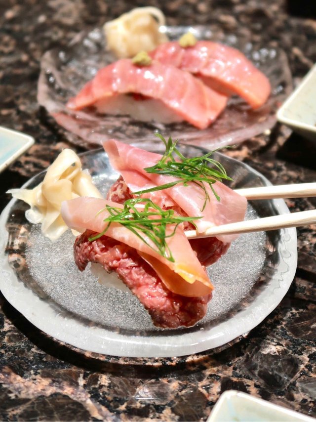 今次嘅炙燒同牛藍鰭金槍魚壽司同伊比利亞火醌壽司