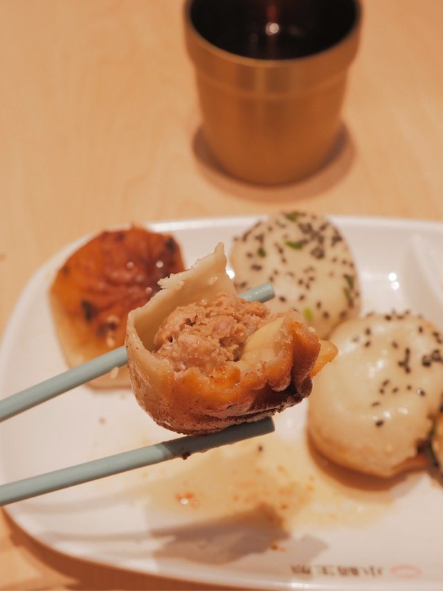 👍這是招牌,也是最好吃🤤,每個生煎包大小一致,不過有些破了皮,摺疊部分香煎,底部向上,