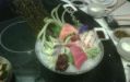 重点是出品,其实很多人都不知道澳门豆捞到底吃什么,我在上海的时候第一次去吃也以为是小火锅,但是发现远比小火锅的内容丰富,。首先是刺生,三文鱼、西陵鱼、北极贝、鱿鱼、金枪鱼都是我爱吃的,老板娘特意强调是挪威的,非日本的,特别新鲜好吃,很少在豆捞店能吃到如此新鲜的刺生。因为刺生新鲜,所以sushi也是异常好吃,尤其是它的饭团,粘度很好,不会像元绿一样,一夹就腰斩。