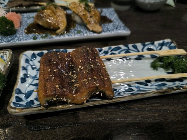 其他串串如烤豬, 培根蕃茄(烤得不夠香脆),烤年糕,京蔥雞肉,鰻魚,牛舌~普普通通,味道一般.
