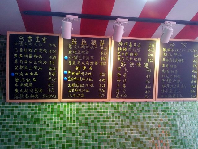 貌似这家也是个夫妻店,男老板在后厨忙乎,老板娘在前台收银,招呼客人。菜品上既有两种不同口味的麻辣烫、呆萌的咖喱兔,又有汤汁浓稠的日式拉面、料足味美的特色披萨和沁人心脾的独制饮料,价钱合理,服务周到。