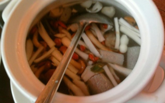 四式菌类汤(小份22元)妈妈要的,够六七碗的样子,看到蘑菇、金针菇竹荪,剩下的不认识了,很浓的菌类味道,汤还是可以的。
