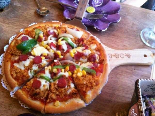 口味:吃货披萨 馅料很足,面饼柔软,饼边脆而不硬,口味和一般的披萨没啥区别。