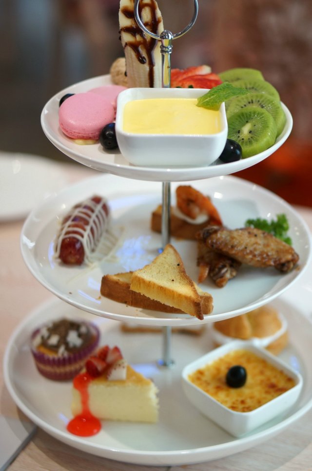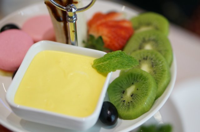 有马卡龙、芒果慕斯、猕猴桃、香蕉、草莓、提子等等,