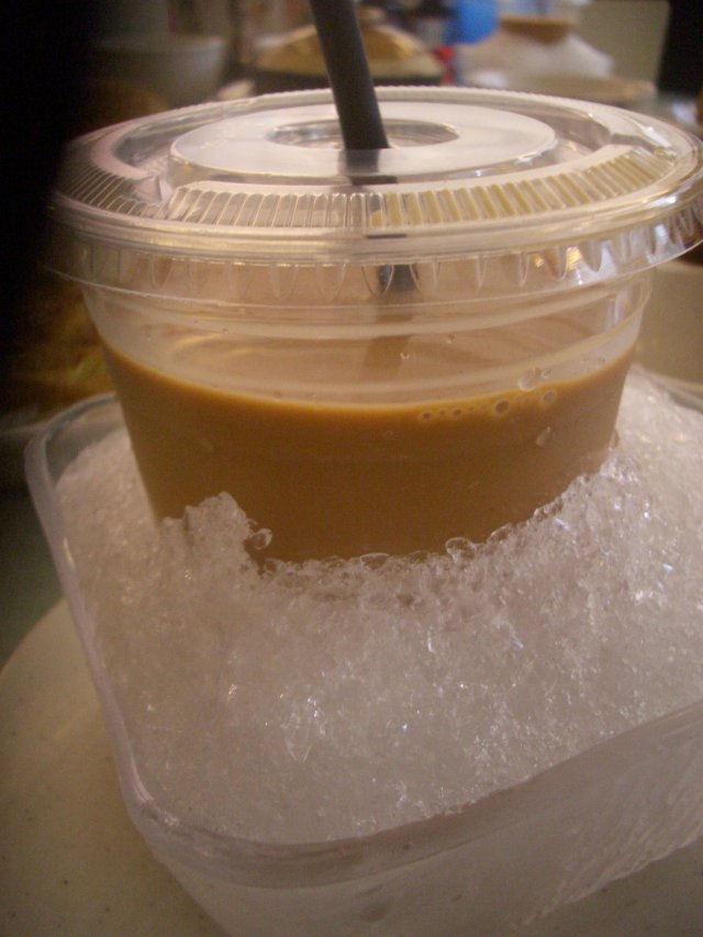 最后还要提一提他们的饮料。上次那个奇异果奶昔好像已经让我吃够苦头了。这次我看来看去看到他们有个推荐的榴莲奶昔,大概对那个满记的榴莲往返印象太好了,就想点这个。但是上次的那个经历实在让我有点后怕,于是还很痴地问服务员这个奶昔会不会放一会就很苦啊,回答当然是不会。但是说实话这个奶昔实在味道一般,可能我还是不大能接受榴莲的关系吧。