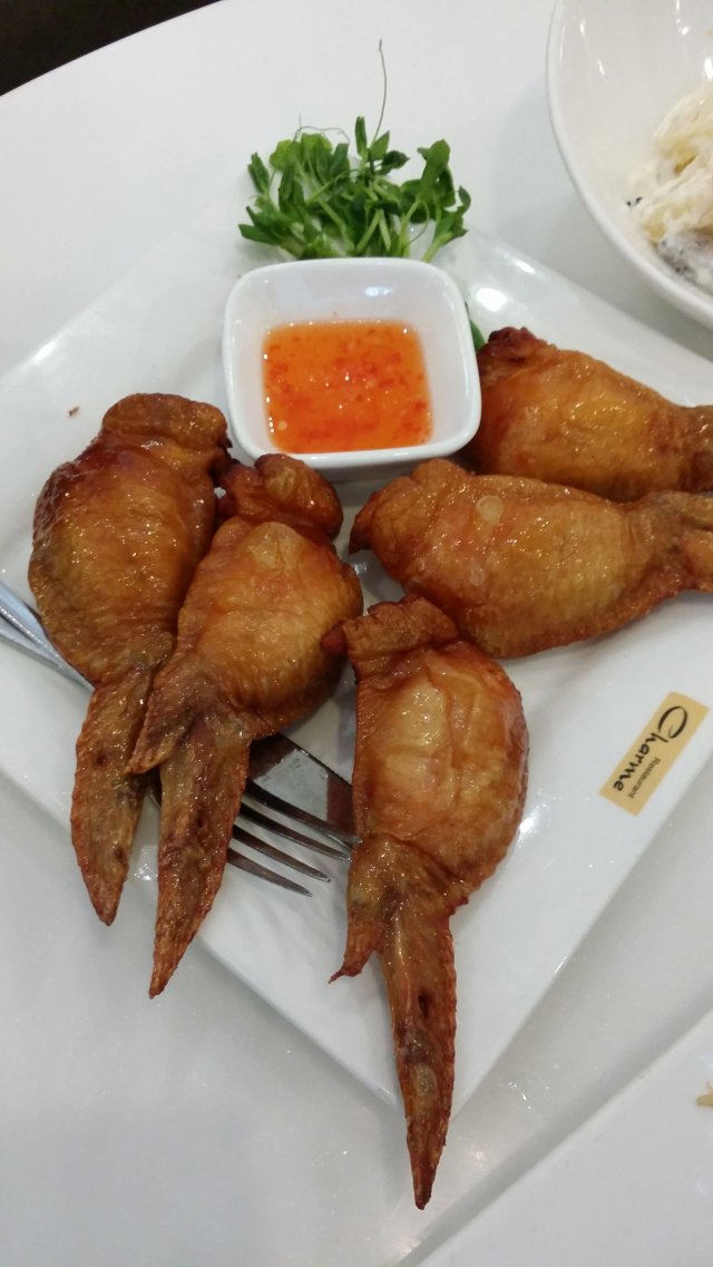 鲜虾胶酿脆皮鸡翅(58元/3只):我们另加了两只40元,去骨用虾胶搭配的鸡翅,虽然少了鸡翅原有的骨感,但别有一番风味,鸡肉处理的很嫩,味道我喜欢;