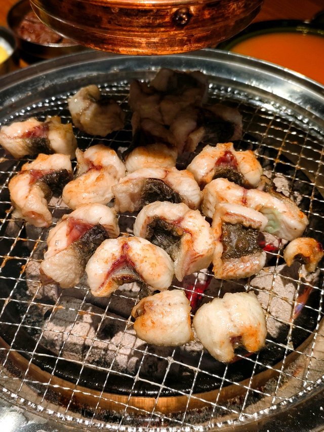 新鮮現切的肉肉,色澤紅潤肥瘦均勻,點了逸品厚切牛舌 (¥88)、奶香芝士牛肋條 (¥78)及濟州島厚切五花 (¥58)。牛肋條肉質鮮嫰,配芝士奶香味十足🤩。牛舌不用燒太熟,吃起來嫰滑有嚼感。