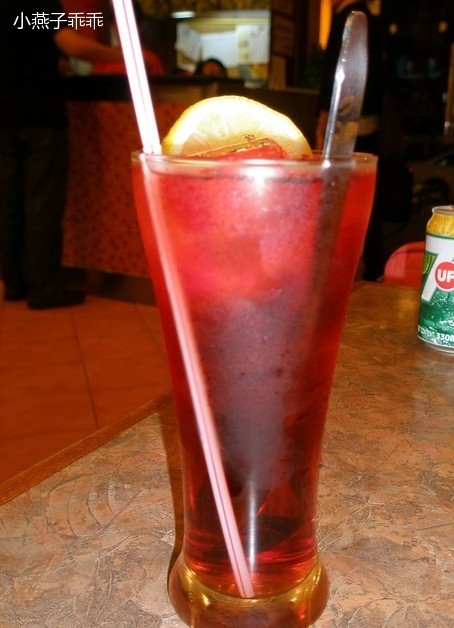 饮料里面冻奶茶做的还是相当的不错的!港味儿十足,很顺滑,没什么苦涩的味道,个人还喜欢有个红色的饮料,貌似应该叫柠檬利宾纳!味道也不错的。