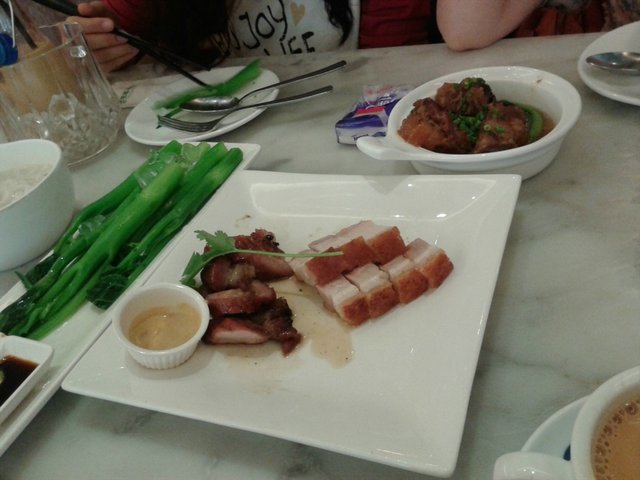 原本想着去港丽,但是考虑到人会很多,所以就选择了翠华。周三5点50分左右我率先到的翠华,总共5个人聚会,给了个6人座位立马入座,没有等位很好哦~港式茶餐厅一直很喜欢,这次点了香槟奶茶:的确是冲调出来的奶茶,市售的奶茶根本比不上;菠萝油:夹了老厚一片黄油;鹿儿岛猪软骨是推荐菜;鱼蛋粉:鱼蛋还不错啦,就是这么一碗5个人每人就分了一个丸子尝味道而已。。。腊味拼盘:这个我吐槽一下,好吃是好吃的,但是价格我觉得不值得,要近100元东西又特别的少,而且上层的鸭屯之类的,我们几乎就没动过,下层的腊味比较好吃;咖喱牛腩:白饭是免费的,加飞饼是5元钱,个么大家一致想吃饼,结果端上来好少的一块块碎饼啊。。。我觉得咖喱还是泰国餐厅的好吃;蔬菜要了芥蓝,冰镇的沾芥末吃,超爽的,爽脆可口,超级赞!!!价格上5个人吃掉500多元,不过很饱了