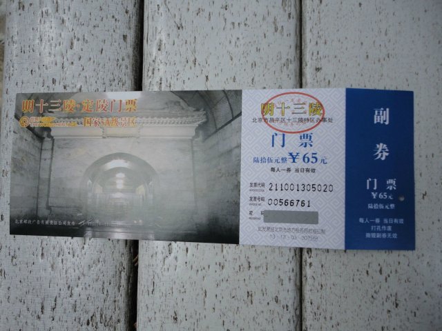 定陵门票——65米,其实偶觉得有点小贵,因为里边就一个地下宫殿,其余基本无,而且地方很小~~~