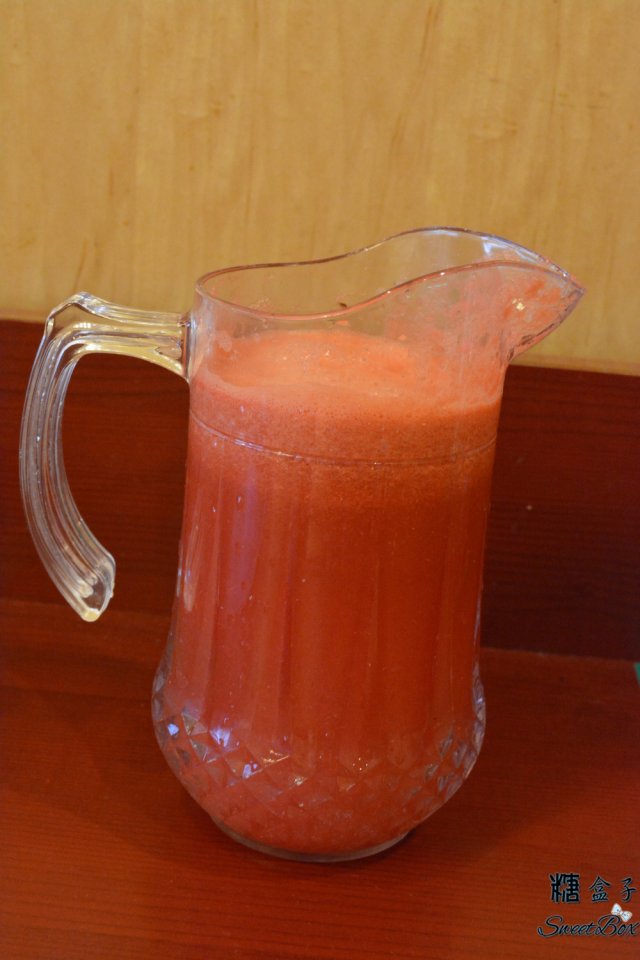 西瓜汁,可能是榨完放置了一会,西瓜汁后来喝的时候有点分层了,显得稀了