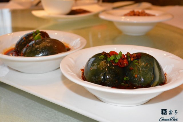 泰椒皮蛋,一般我是不吃皮蛋的,好像说都是那石灰做的,我老觉得不安全,不过看着皮蛋挺可爱的,晶莹剔透的~