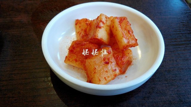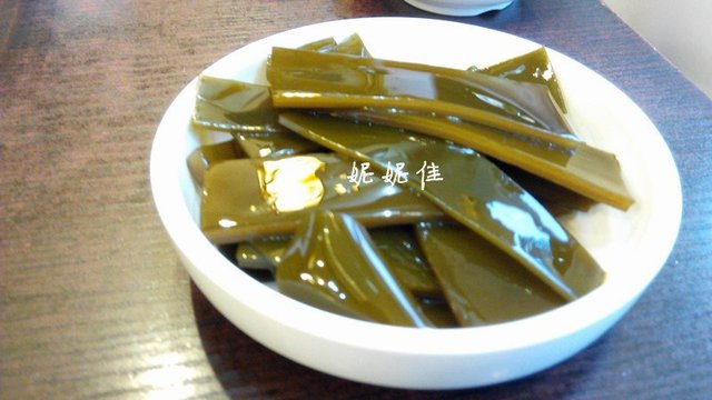 有熟客问老板海带有没有,据说很好吃,经常吃不到,老板说腌那个时间长,比较麻烦,现在还没到时候,不过应客人要求还是给上了,然后别桌也有幸都加了一份海带。虽然没到时候但已经很不错了,海带块已经充分入了咸香味,有点点辣,只是泡菜的那种酸味不够,口感脆软,挺好吃的。