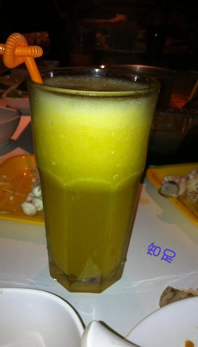 特别要说的是他这的鲜果饮料,都是新鲜的水果榨出来的,味道很浓,沫子很多,因为都是新鲜水果,没有别的东西,哈哈啊~味道真的好喝,我喝了两杯呢,一杯是柚子汁,一杯是梅子汁,味道很纯,一喝就是没有加任何添加剂的饮料~喜欢!后来吃饱了又拿了一份鸭翅,哈哈哈,有点微辣,味道很入,好吃!又要了一份宽面条,煮在火锅里也很好吃!下次还会来的