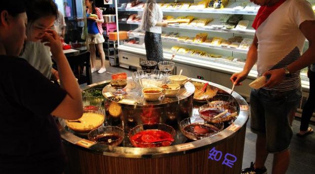 之前都没有在火锅里吃过魔芋丝,在这第一次吃到魔芋丝,哈哈,味道很不一般诶!配合芝麻酱味道很好吃,魔芋丝只在便利店吃过,味道很不错,在火锅里哈,又是别一番滋味!