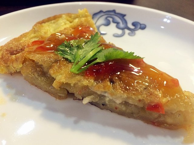 汕头蚝仔烙,39米。看写的是舌尖上的中国推荐的一道菜就点了,看卖相有点像蚵仔煎,味道果然也是大同小异。蚝仔倒是很新鲜,加入糯米粉和鸡蛋之后煎制,口感软糯,有点家常菜的赶脚。铁板充分起到保温效果,趁热蘸甜辣酱还不错。