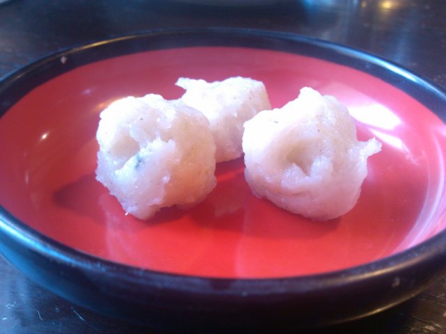 鱼丸白嫩可爱,看着就很有弹性。煮熟后的鱼丸口感很Q,没有什么腥气,吃着口感细腻,很有嚼劲。