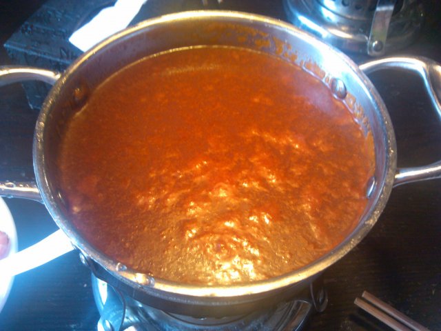 汤汁颜色红艳,酸甜可口,不管搭配什么菜涮着吃都很提味。