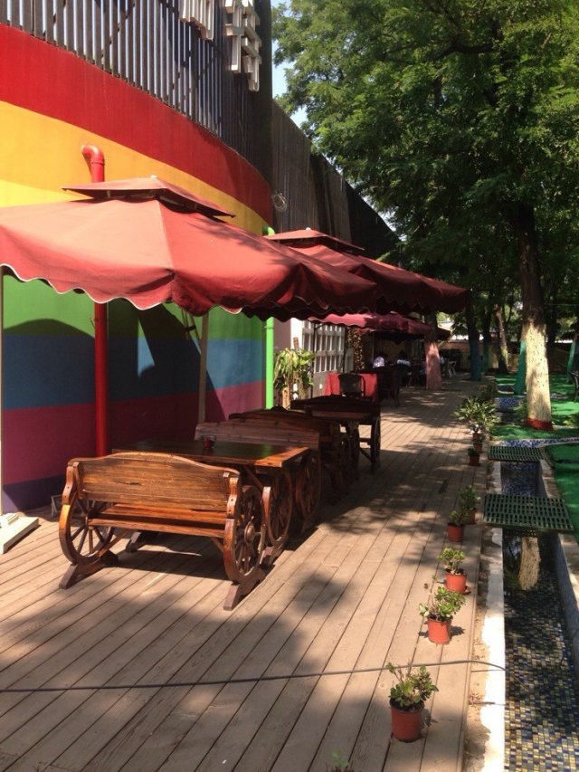 最叫人大爱的是后边的小院哦,哇哦,大太阳伞下有感的火车轮子座椅、餐桌;孩子们大爱的充气城堡和秋千摇椅,如果在阳光午后在这种幽静的环境里和亲爱的人儿们享受着甜蜜的下午茶,那该是一件多么幸福的事儿哇!呜呜···可惜木有带爱的人儿们来哦,不然一定会玩得更高兴的哦!嗯,我决定一定要找机会带爱的人儿们来享受下哦!