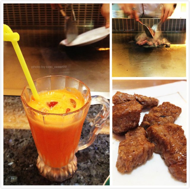 接下来就是今天的重头戏----台式铁板烧,卖个关子待会还有火辣辣的火焰舞欣赏噢。师傅已经在做准备功夫了,马上开show。