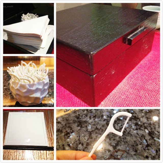 简单大方的餐具,哈哈,大家猜猜这盒子里装的是什么,马上开估,请往下看。纸巾和牙签,这不是普通的牙签喔,是两用牙签,一头是牙线,另外一头是牙签。