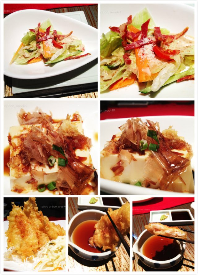 这个套餐有吞拿鱼、八爪鱼和三文鱼。对于八爪鱼和三文鱼的口感,我不能做评价,因为~因为~因为我刚拍完照,低头放下手机后,当我再次抬头时,只剩下一片吞拿鱼了,都被朋友们吃光光了,我那个伤心丫。看到大家都很爱吃刺身。虽然我只吃了吞拿鱼,但是真的好新鲜,所以我想八爪鱼和三文鱼也肯定更加好吃,只可惜,我没有这个口福了。