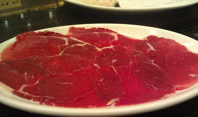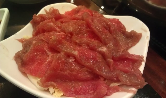 新鲜滑牛肉,肉亮晶晶的,但太薄了,以至于吃不出是牛肉味,但怎么涮肉都很嫩滑;