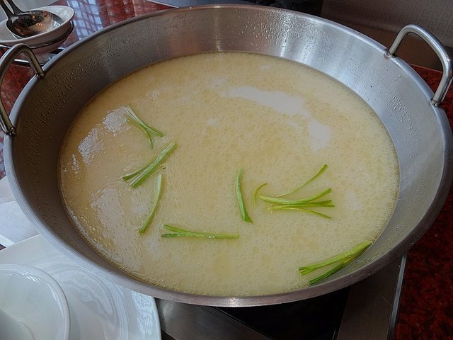 跟家人一起吃,点的是白汤锅底,是用骨头熬制的汤,浓浓的白汤,很鲜!