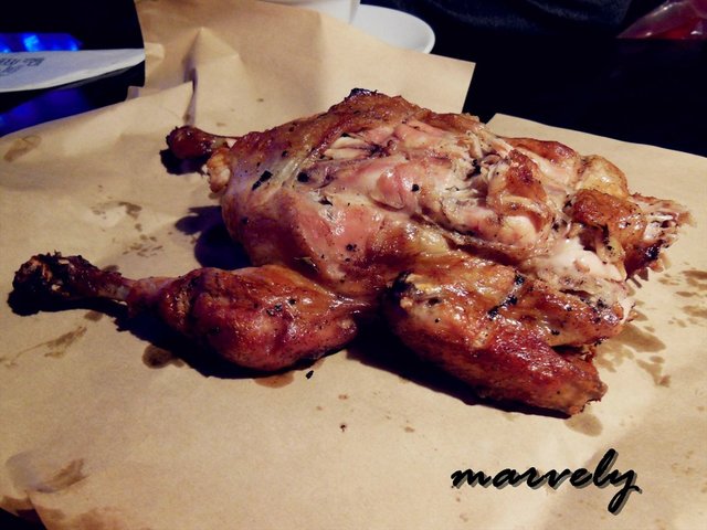 据说这鸡也是在店堂中央的那个烤炉里烤出来的,所以拿出来的时候,鸡是被油纸包着的,打开的鸡肉放在两张厚纸上,鸡皮闪烁着金黄油亮的光泽。我们自己用筷子,很容易就将鸡肉拆开,还没吃,即已经闻到了香喷喷的味道,让人垂涎欲滴。鸡肉果然很香嫩幼滑,鸡皮稍稍的Q,不需要蘸店家提供的三种酱料,味道就已经很完美了。