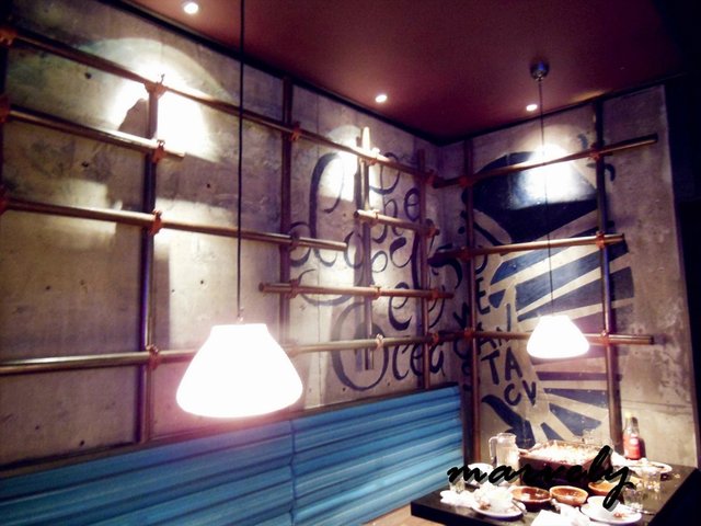 店里的墙壁装饰,很多都画着鱼的图案,有的是直接画的,有的则是用有颜色的砖块拼接的,还有的就是彩绘的玻璃。