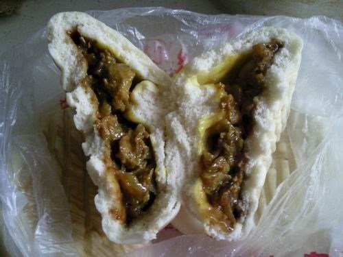 还要了咖喱鸡肉的,3元,咖喱馅也是挺多的,大肉块看的见,还行,就是感觉油稍微多了点~~~