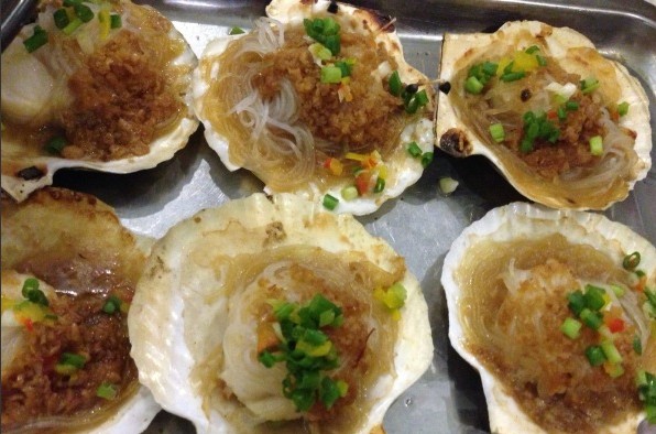 烤扇贝:个大中等大小,粉丝挺多,里面肉是活肉,蒜香味的,挺好吃,这个季节能吃到真不错。