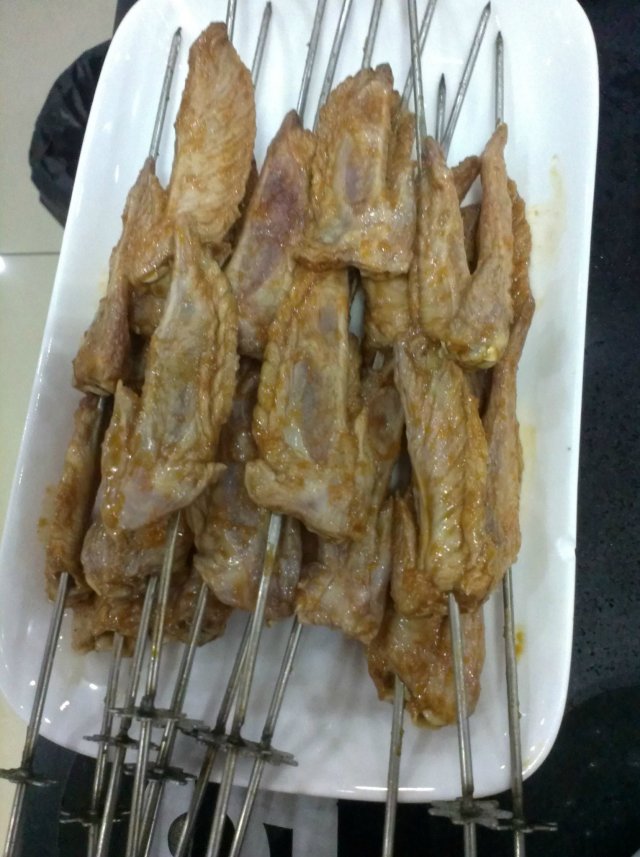 奥尔良翅尖和原味烤翅是被事先腌制过的,所以不用太加料,味道就很好了,虽然说最近谈鸡色变,但我们还是仗着胆子大吃了,反正烤的久点就是了。而这鸡翅,虽然被我们刻意烤的久了些,但还是很嫩很入味。