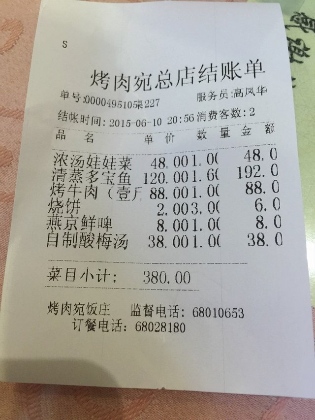 一斤的普通烤牛肉是88元,烧饼和配料是额外单点的。