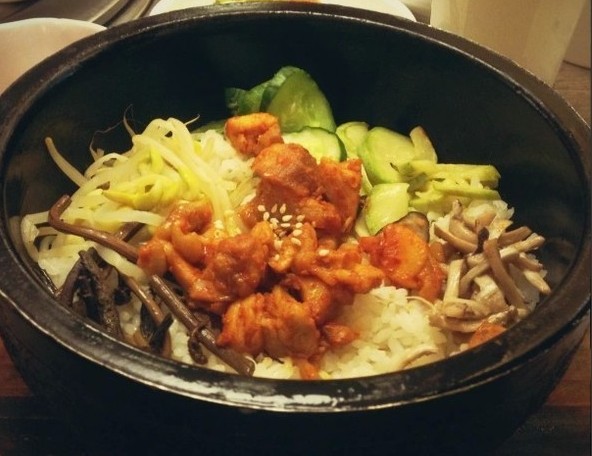 3、权金城拌饭:里面配料素了些,但不影响口感,基础的豆芽、小黄瓜、蕨菜根、泡菜、菇类都有了,拌上韩式辣椒酱味道一样赞,饭比较多,菜再多些就更好了。