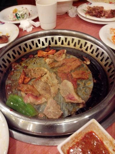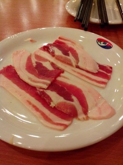 这种肥肉和瘦肉都有的,烤着才好吃,比较有油,味道才不错,口感很好,蘸着料很好吃,不油腻。