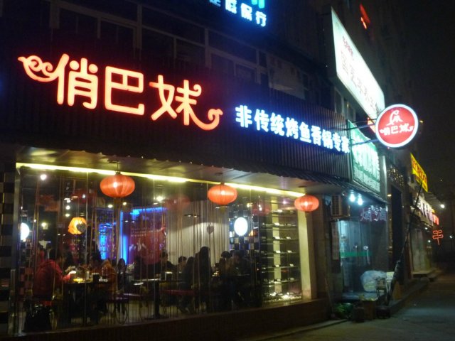 门前20米就有公交车站,很方便,下车就能看到南边有个俏巴妹的招牌,店不是很大,只一层,没有包间,但装潢的很是别致,很现代,很青春,墙上彩绘的另类鱼说很有趣哈~~窗边有秋千椅啊,可羿没坐上,下次再说~