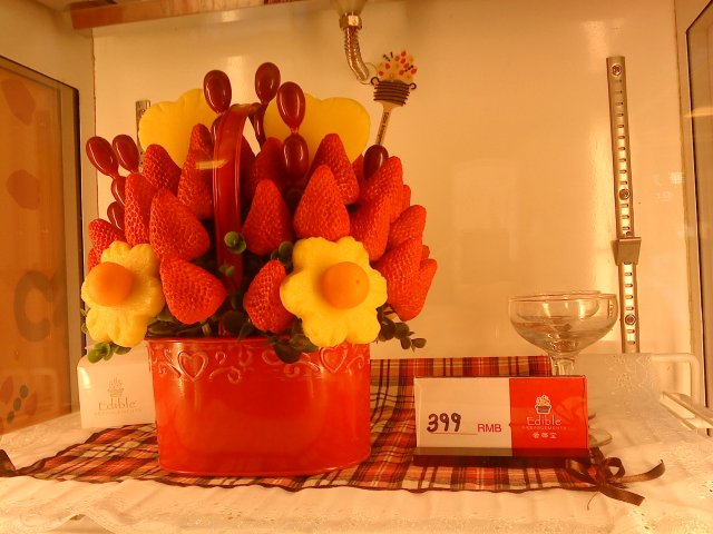 爱蒂宝(近凤凰商街) gaoqdd1等級32013-11-303 瀏覽 關注 这家店是北京开的第一家。是用新鲜水果做出各种花的造型。做为聚会或者庆生的礼物也是很不错的。水果的造型各式各样,全都很新鲜也很甜。草莓上面裹了巧克力。菠萝造型的花,中间部分很硬嚼不动,中间的就扔了。哈蜜瓜也很甜。下面的容器很精致,是瓷的,吃完水果后可以当花盆用。价格有点贵,要比一般蛋糕或者一束花贵一点。不过很值,看到成品后让人心情大好。以上食評乃用戶個人意見 , 並不代表OpenRice之觀點。讚好分享爱蒂宝(近凤凰商街) 爱蒂宝 https://s.openrice.com/KtbT1m0WSO800檢舉 張貼 評分5味道5環境5服務5衛生4抵食