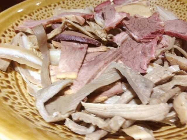 【】10,里面是香菜拌的牛肉,味道麻辣,很地道。