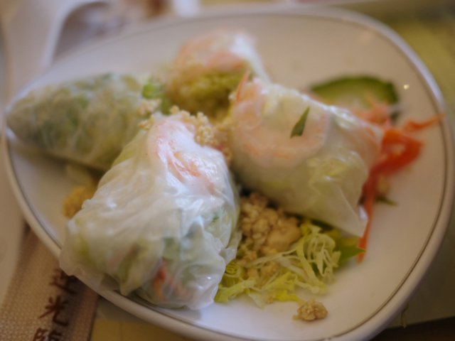 【越南米纸卷】单点9米。里面的虾仁不太大,薄荷味道很浓,喜欢~