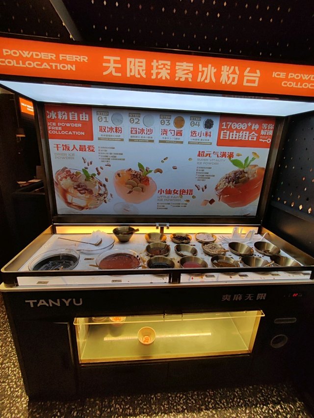 一入門口,見到有個甜品吧,無限冰粉,見到有兩款涼粉,白涼粉,蜜桃涼粉,還有無限配料,自由配搭!