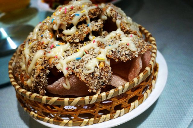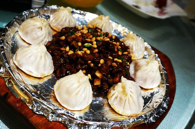 很新颖的一道菜,不过很明显还是蒸小笼比较好吃,因为皮稍微厚了一点。里面汁还是很多的,比较喜欢中间的牛肉粒,好好吃哦~~