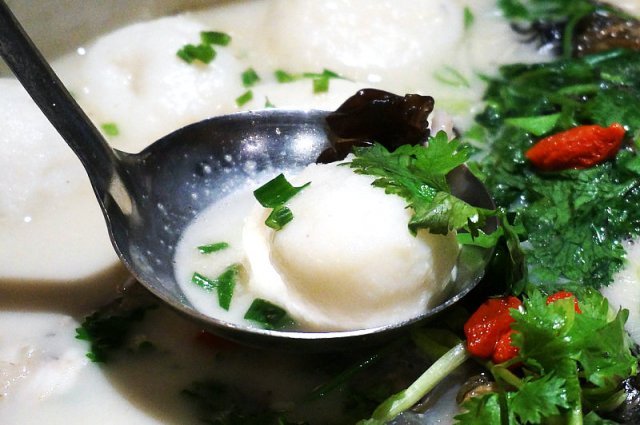 汤很好吃,鱼饺也很特别,又是一特色鱼料理,用鱼做饺子皮,里面包着肉,鱼肉很好吃,鱼汤很好喝。